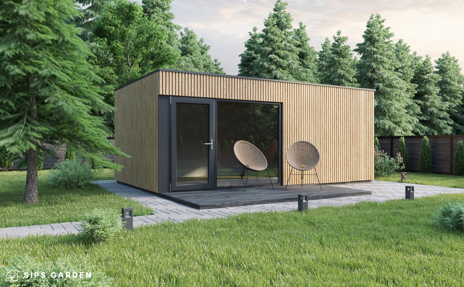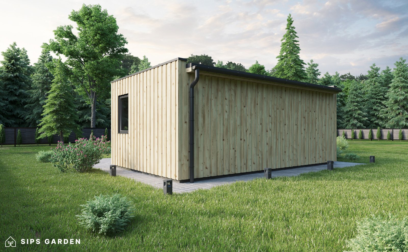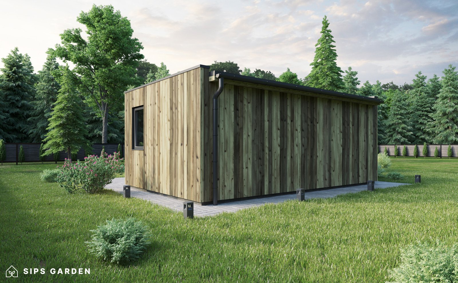 This product is crafted using an advanced, high-quality, and energy-efficient SIPs (Structural Insulated Panels) system, which ensures superior insulation and long-lasting durability. The exterior features anthracite grey PVC double-glazed windows and doors, complemented by an EPDM roof cover, a sturdy steel rain gutter, and elegant steel finishing details, all included as standard elements.